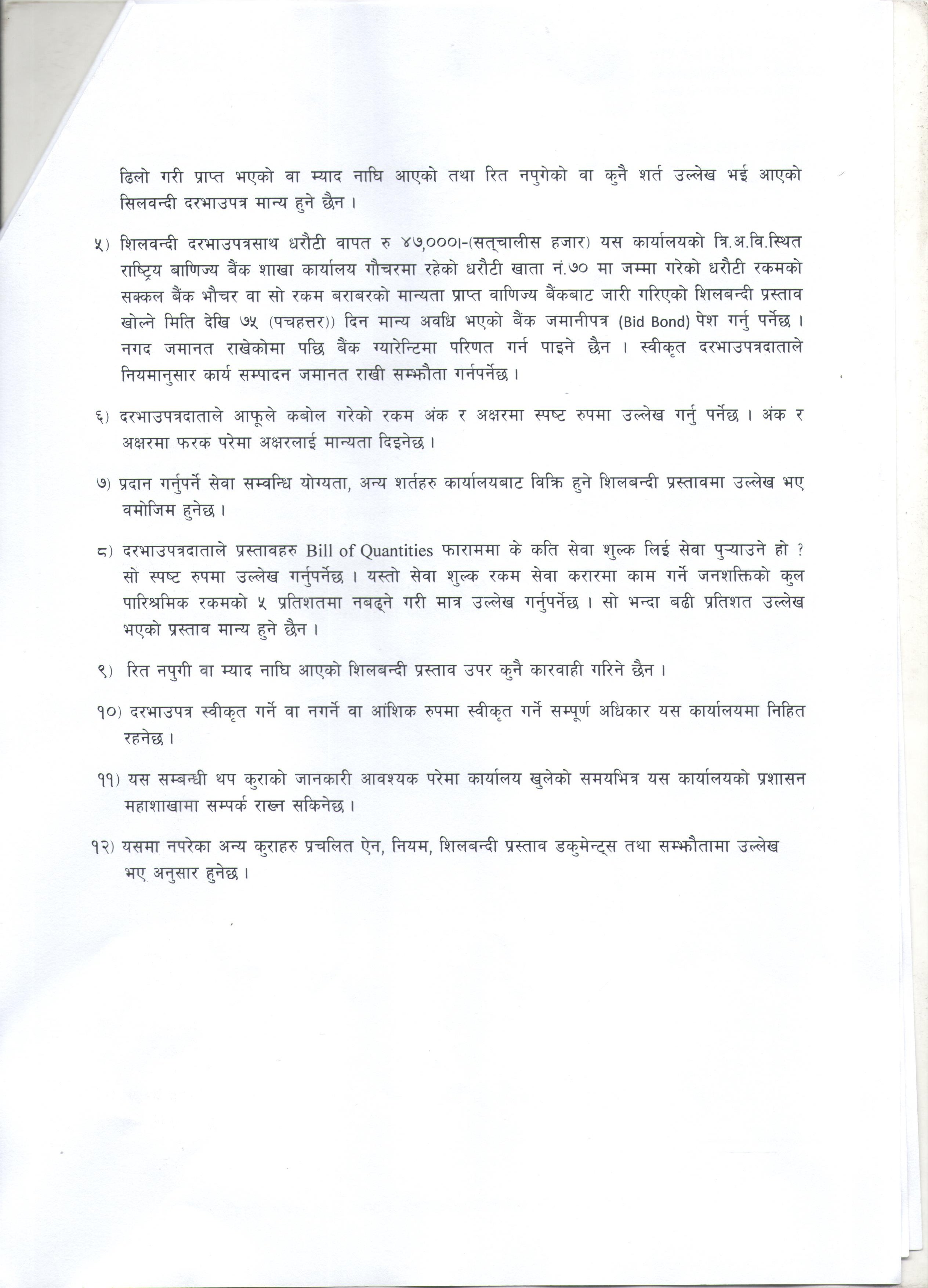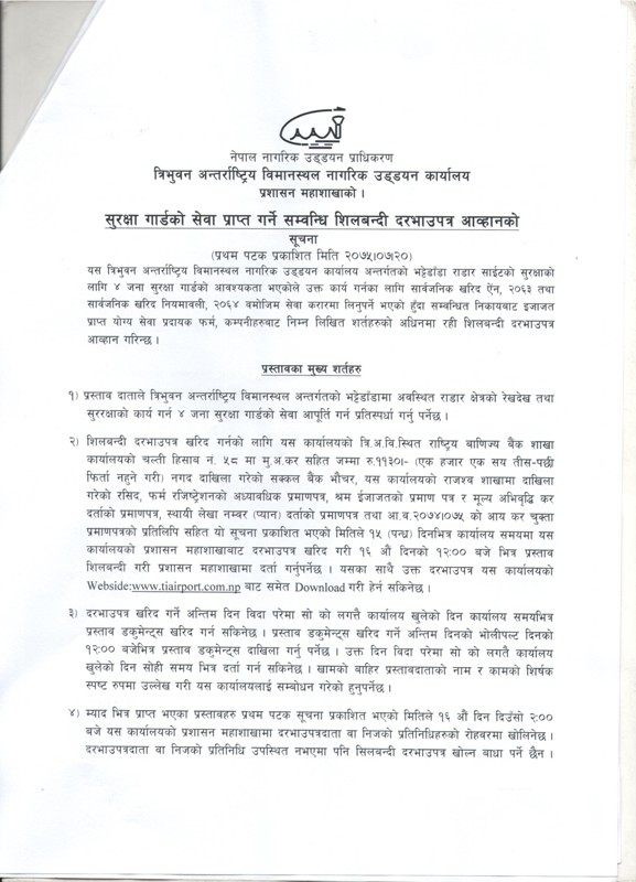 सुरक्षा गार्डको सेवा प्राप्त गर्ने सम्बन्धि शिलबन्दी दरभाउपत्र आव्हानको सूचना (२०७५/०७/२०)
